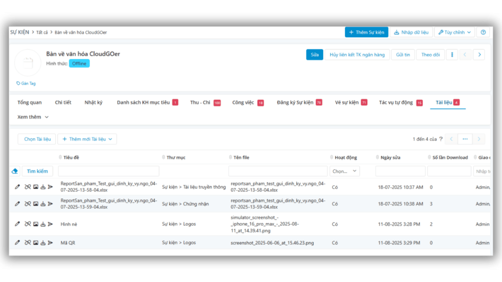 Quản lý sự kiện dễ dàng, tất cả trong một, từ việc lập kế hoạch chỉ trong vài phút, nhóm công việc thông minh theo hạng mục & mốc thời gian, cho đến giao việc – theo dõi liền mạch trên CloudWork (app & web). Mọi chi phí cũng được đồng bộ tự động, giúp bạn kiểm soát tài chính sự kiện minh bạch và chính xác tuyệt đối.